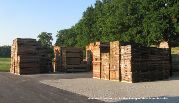Nach dem Einschnitt können Ihre wertvollen Schnitthölzer - fachgerecht gestapelt - auf dem Schnittholzplatz vorgelagert und vorgetrocknet werden. Empfindliche Hölzer werden unter Schattennetzen vor Sonne und Wind geschützt.